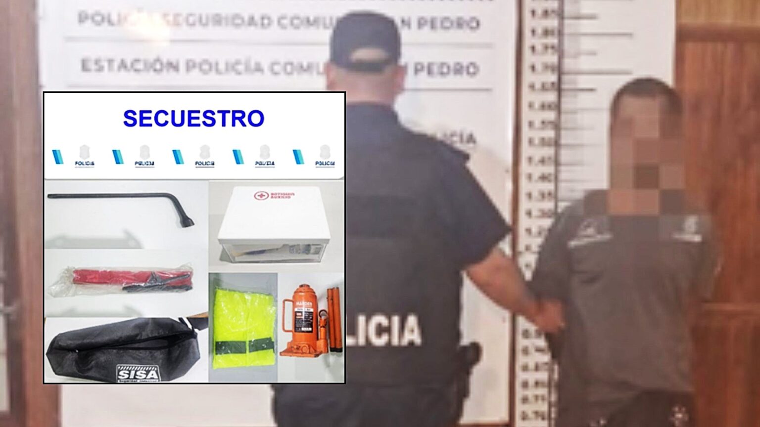 Del vehículo sustrajo diversos elementos, entre ellos un gato hidráulico, balizas, un chaleco refractario, una llave tubo y un botiquín que se encontraba en un bolso de lona negro. Todos los objetos fueron recuperados en el procedimiento.