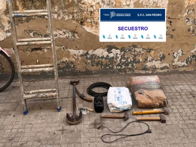 Por su parte, las cosas robadas que incluían una escalera, una bolsa de cemento, una pala, y diversas herramientas de trabajo, fueron secuestradas y restituidas a su dueño.